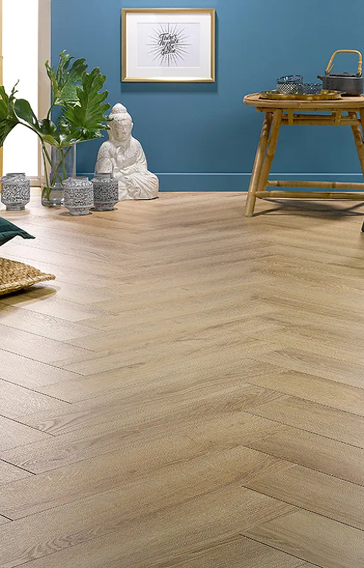 - Ламинат с фаской: 4V-фаска придает полу элегантный вид и упрощает укладку.