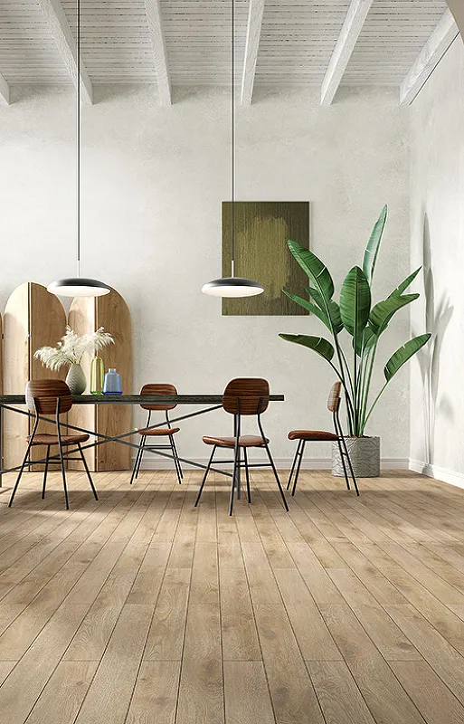 - Влагостойкость: Благодаря усовершенствованной замковой системе Clip 5G®, ламинат надежно защищен от проникновения воды, что идеально для помещений с повышенной влажностью.