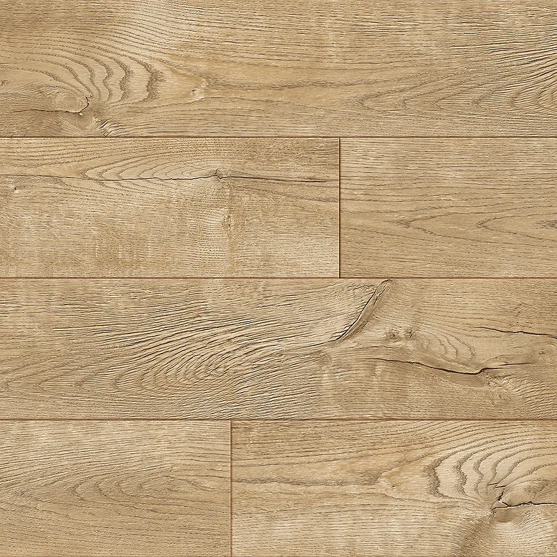 - Эстетика: Синхротиснение и V-фаска подчеркивают натуральную текстуру дуба, создавая эффект цельной деревянной доски.