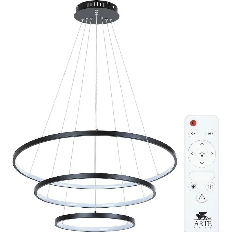 Люстра Artelamp Frodo A2197SP-3BK — идеальное решение для создания стильного интерьера в гостиной. Подвесная люстра в современном стиле, выполненная из металла и акрила, станет гармоничным дополнением любого пространства. С мощностью 145 Вт и световым потоком 5400 Лм, она эффективно освещает площадь до 18 м². Возможность регулировки цветовой температуры от 3000K до 6000K позволяет выбрать теплый, белый или дневной свет.