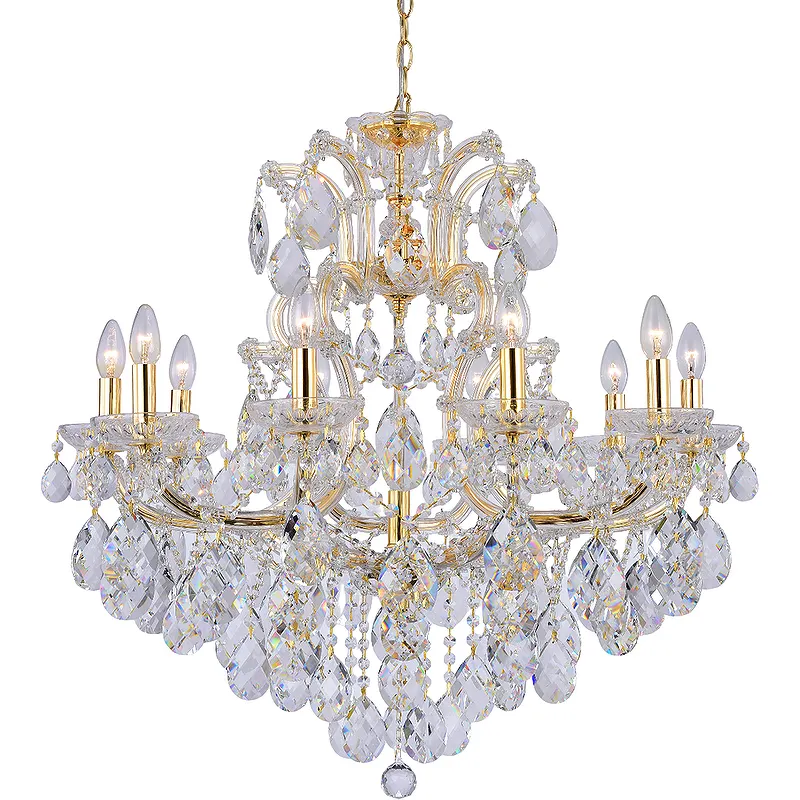 - Классический стиль люстры: Идеально подходит для создания изысканного интерьера благодаря классическому дизайну и сочетанию золота и прозрачного стекла.
