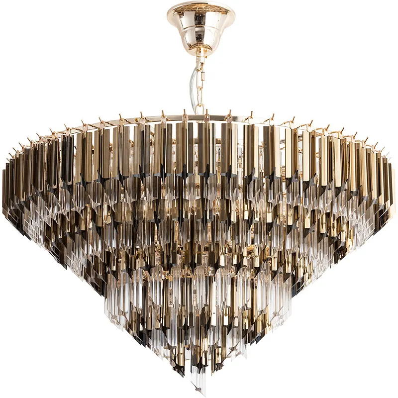 - Стильный дизайн: Современная люстра с прозрачными и золотыми элементами добавит элегантности любому интерьеру.