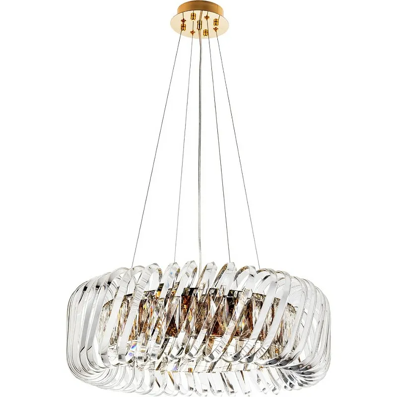 Подвесная люстра Divinare Megan 7568/18 LM-9 Прозрачная Бронза — это идеальное решение для создания стильного интерьера в гостиной. Выполненная в современном стиле, данная люстра станет центральным элементом вашего пространства, обеспечивая освещение на площади до 14 кв. м.