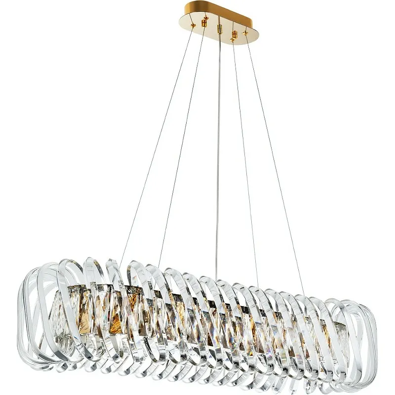 Люстра Divinare Megan 7568/18 SP-12 Прозрачная Бронза — идеальное решение для освещения вашего интерьера в современном стиле. Эта подвесная люстра от итальянского бренда Divinare, изготовленная из металла и хрусталя, станет центральным элементом декора в гостиной или столовой. Люстра обеспечивает освещение площадью до 18 кв. м., что делает её отличным выбором для просторных помещений.