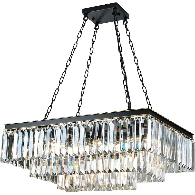 - Стильный дизайн: Современный стиль и сочетание прозрачного и черного цветов делают эту люстру акцентом любого интерьера.