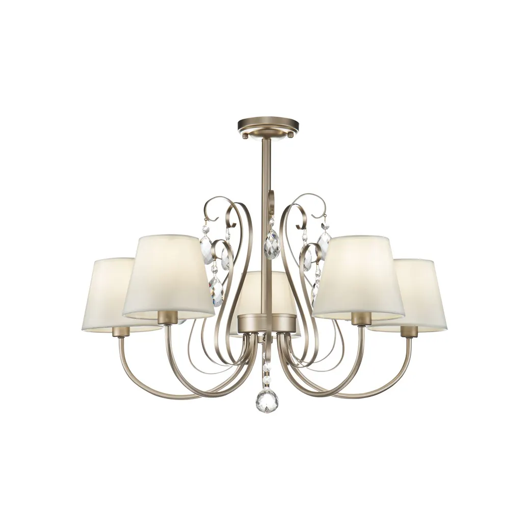 Серия Vanda выполнена в классическом стиле. Благодаря своему строгому и элегантному дизайну светильники могут дополнить интерьер гостиной, спальни и даже гардеробной комнаты. Металлическая арматура цвета матового золота, абажуры сделаны из белой ткани. Светильники украшены декоративными подвесками.