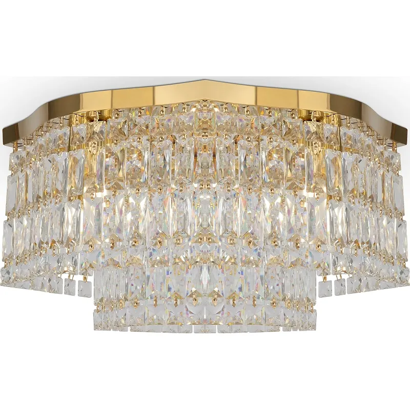 - Стильный современный дизайн: Люстра модерн из золота и прозрачного стекла станет украшением любого интерьера, будь то гостиная или банкетный зал.