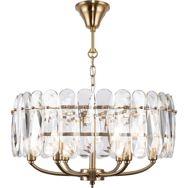 - Элегантный дизайн: Прозрачные плафоны и латунная арматура делают люстру стильным акцентом в интерьере, подчеркивая его утонченность и изысканность.