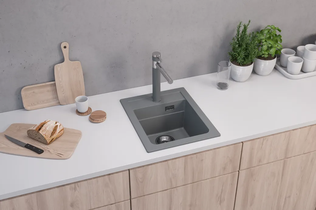 - Надежный композитный материал: кухонная мойка устойчива к повреждениям и легко очищается.