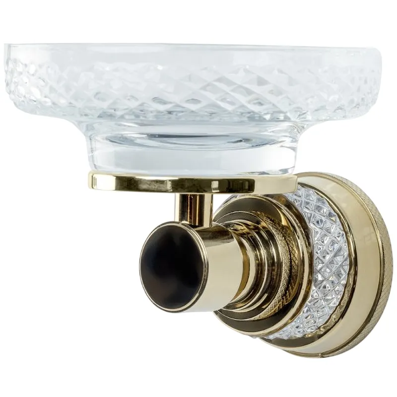 Мыльница Boheme Aura 10243-G.Характеристики: Цвет: золото. Материал: латунь, стекло. Декор хрустальное стекло. Габариты (ШхВхД): 115х110х120 мм. Монтаж: настенный. В комплекте поставки: Мыльница. Крепления.