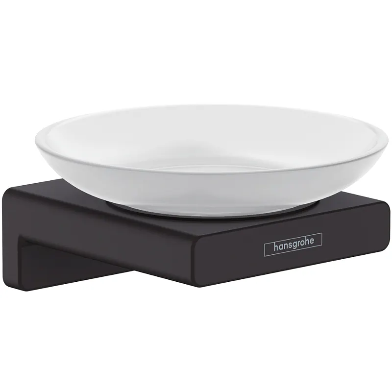 Мыльница Hansgrohe AddStoris 41746670.Характеристики: Цвет: черный матовый. Материал: латунь, стекло. Диаметр между отверстиями: 26 см. Диаметр отверстия: 6 мм. Скрытое крепление. Монтаж: настенный. В комплекте поставки: мыльница.