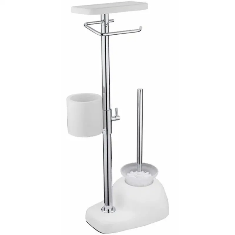 - Многофункциональность: Напольная стойка сочетает в себе держатель для туалетной бумаги, ершик и держатель для освежителя воздуха, что обеспечивает максимальное удобство.