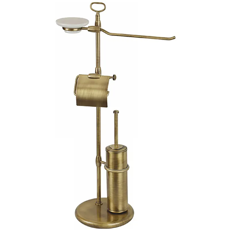 - Многофункциональность: стойка оснащена ершиком, бумагодержателем, мыльницей и полотенцедержателем.