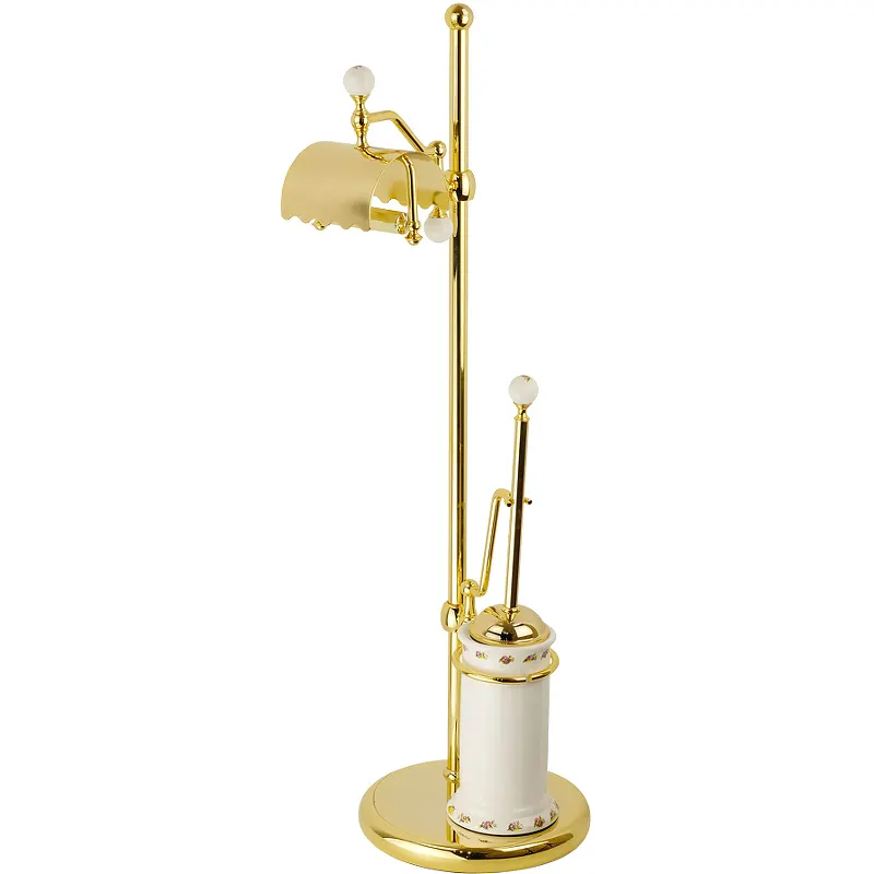 Напольная стойка Migliore Provance 17715.Стойка Migliore стойко выдержит постоянное воздействие влаги подчеркнув общий вид санузла.Характеристики: Цвет: золото. Материал: латунь, керамика. Высота изделия: 86 см. Функциональность: ершик для туалета, держатель туалетной бумаги с крышкой. Монтаж: напольный. В комплекте поставки: Напольная стойка.