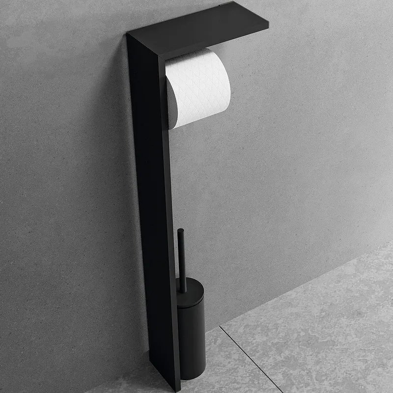 Напольная стойка Novellini Kuadra R90AKFPRS-H.Характеристики: Цвет: черный матовый. Материал: алюминий. Оснащение: держатель туалетной бумаги, ёршик для унитаза, колба для ёршика. В комплекте поставки: Напольная стойка.
