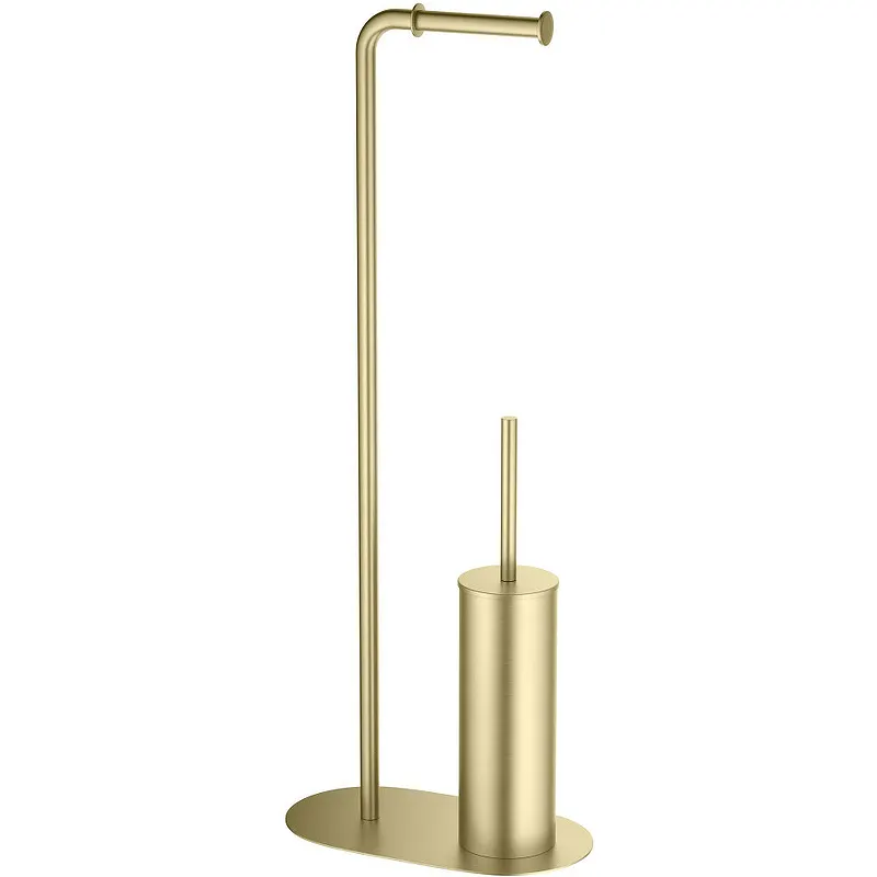 Напольная стойка Schein 9302BG.Характеристики: Цвет: золото матовое. Материал: нержавеющая сталь. Размеры (ШхВхД): 300х820х160 мм. Монтаж: напольный. В комплекте поставки: Напольная стойка. Держатель туалетной бумаги. Ершик для унитаза. Колба для ершика.