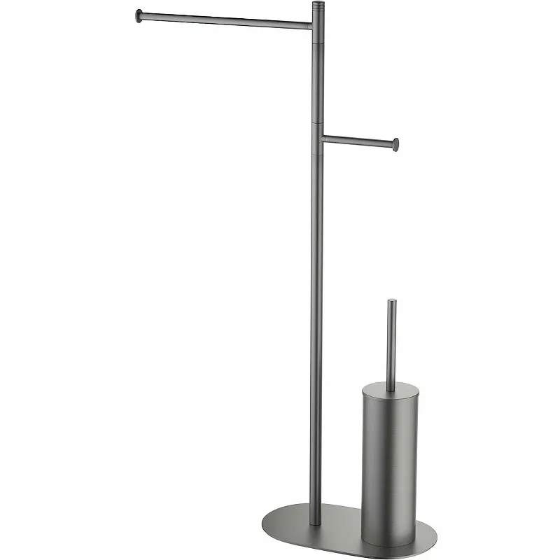 Напольная стойка Timo Saona 13085/18.Характеристики: Цвет: черное золото. Материал: латунь. Поверхность: матовая. Размер (ШхВхД): 180х850х528 мм. Монтаж: напольный. В комплекте поставки: Стойка. Щетка для туалета. Колба для щетки. Инструкция.