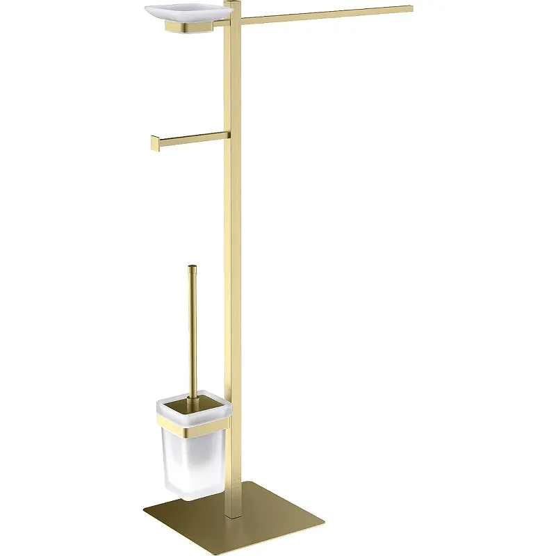 Напольная стойка Timo Selene 17085/17.Характеристики: Материал: латунь, стекло. Цвет: золото матовое. Габариты: 22 х 85,2 х 50,3 см. В комплекте поставки: Стойка. Щетка для туалета. Колба для щетки стеклянная.