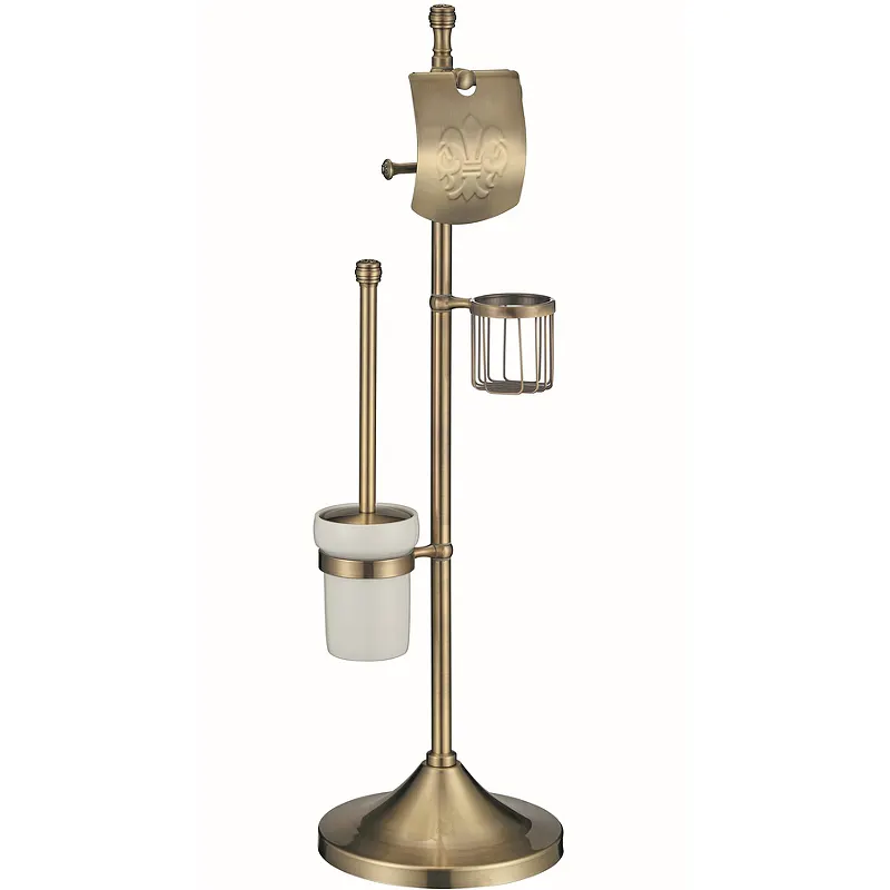 Напольная стойка Viko V-365.Характеристики: Цвет: бронза. Материал: латунь, стекло. Монтаж: напольный. В комплекте поставки: Стойка. Держатель туалетной бумаги. Держатель освежителя воздуха. Ершик для унитаза.