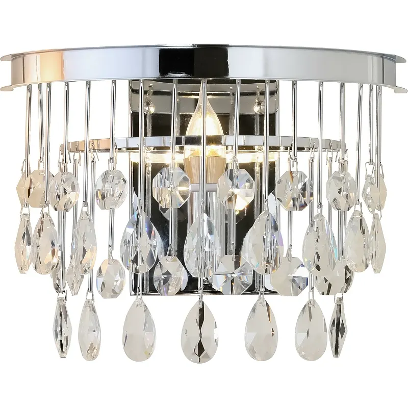 - Элегантный дизайн для интерьера: Хромированная арматура и прозрачный плафон из хрусталя создают современный и изысканный вид.