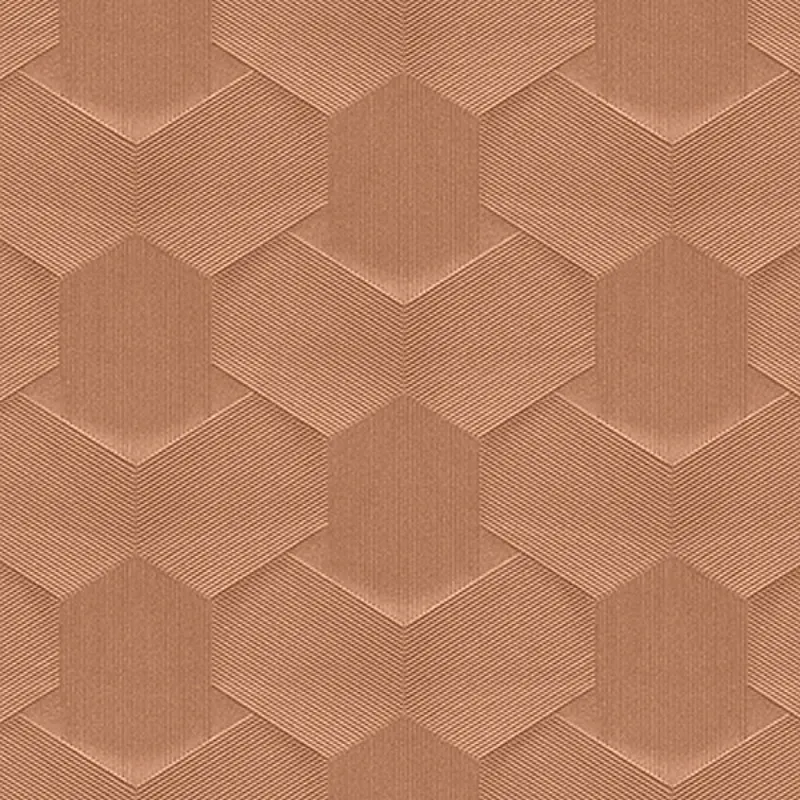 - Виниловые обои на флизелине размером 1,06*10,05 м с геометрическим рисунком в оттенках коричневого и оранжевого.