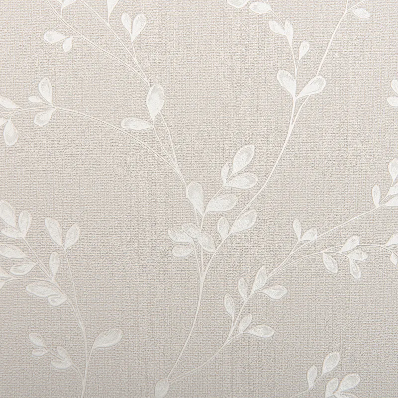 - Полный рулон обоев с характеристиками: Винил на флизелине (1,06*10) Бежевый/Белый, Листья