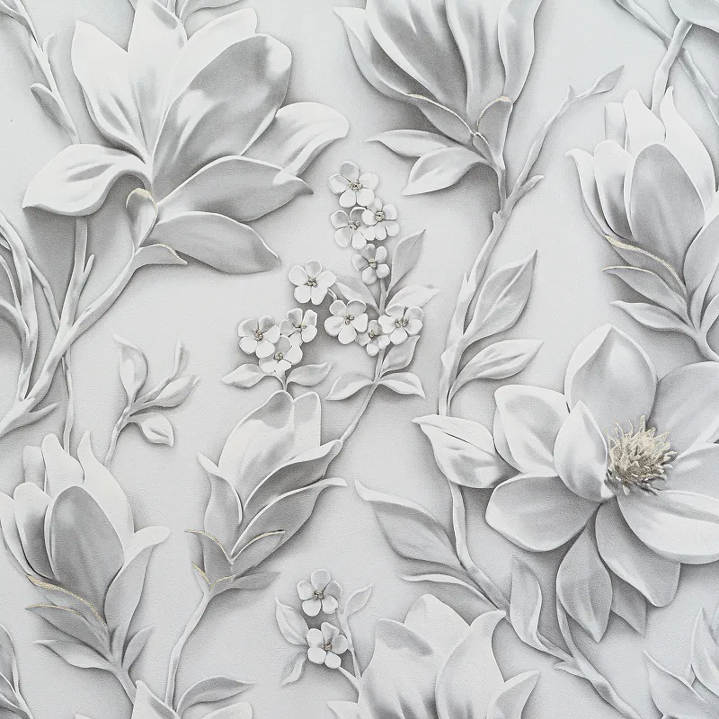 Описание комплектации: Винил на флизелине (1,06*10,05) Серый, Цветы/Листья