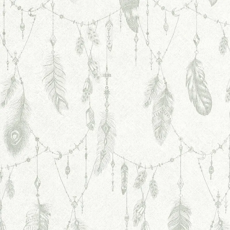 Обои AS Creation Boho Love 36465-1 Винил на флизелине (0,53*10,05) Белый/Серый, Абстракция/Перья