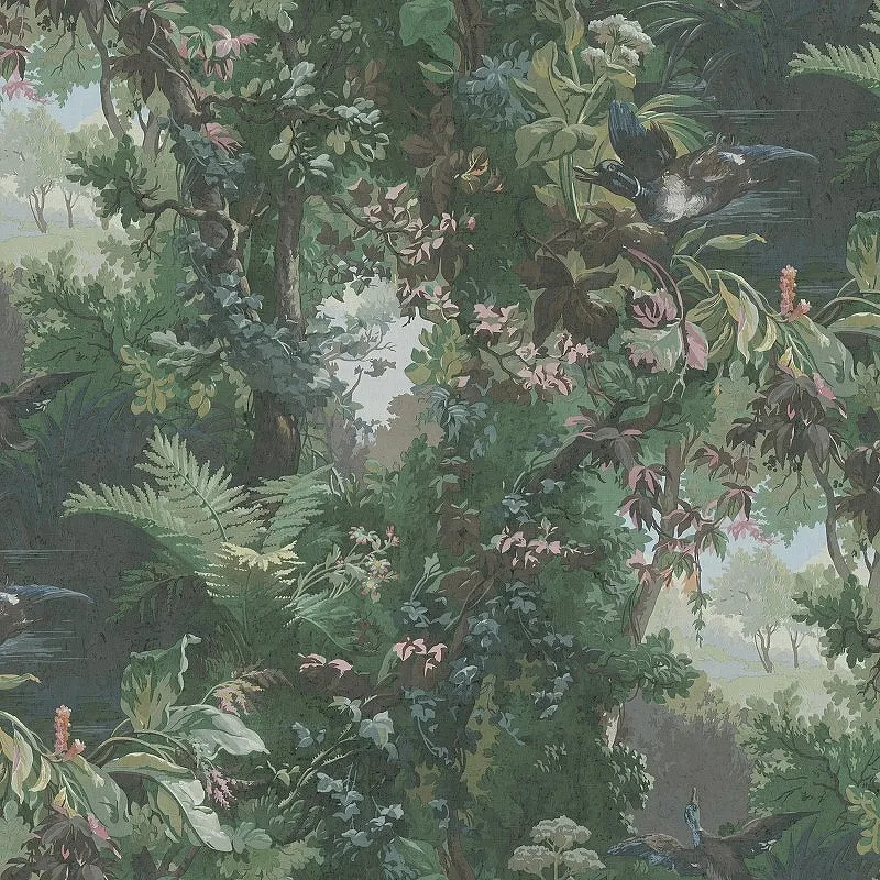 Обои AS Creation Impression 38005-1 Винил на флизелине (1,06*10,05) Зеленый, Деревья/Птицы
