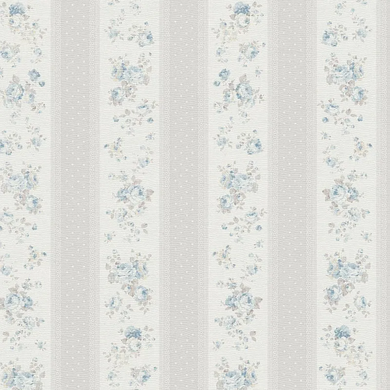 Обои AS Creation Maison Charme 39069-3 Винил на флизелине (0,53*10,05) Белый/Голубой/Серый, Полоса/Цветы