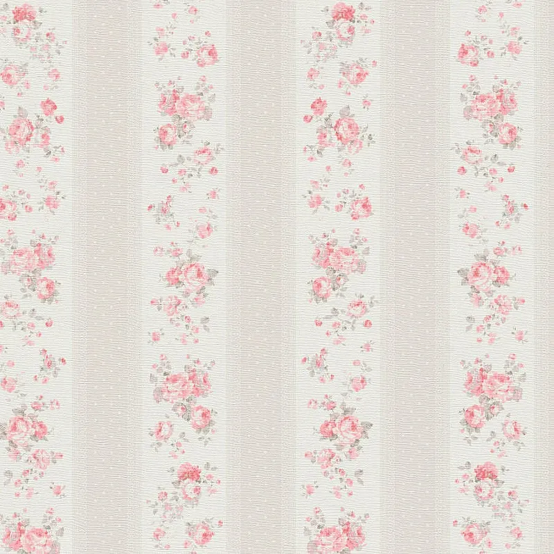 Обои AS Creation Maison Charme 39069-4 Винил на флизелине (0,53*10,05) Белый/Бежевый/Розовый, Полоса/Цветы