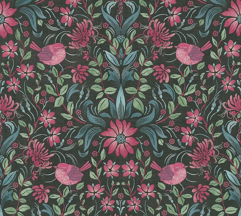 Обои AS Creation Maison Charme 39075-1 Винил на флизелине (0,53*10,05) Черный/Разноцветный, Птицы/Цветы