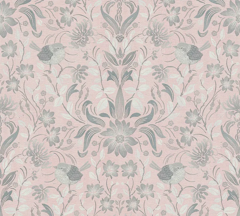 Обои AS Creation Maison Charme 39075-2 Винил на флизелине (0,53*10,05) Розовый/Серый/Белый, Птицы/Цветы
