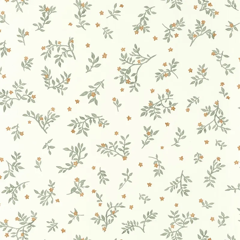 - Винил на флизелине (53*10,05) Белый/Зеленый/Оранжевый, Листья/Цветы