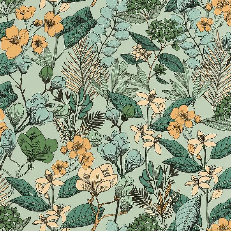 Обои Caselio Flower Power 101857129 Винил на флизелине (0,53*10,05) Зеленый, Цветы
