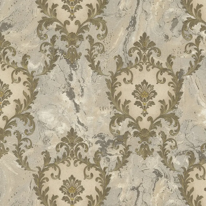 - Изысканный рисунок: Дамаск серого и золотого цвета добавляет элегантности любому интерьеру.