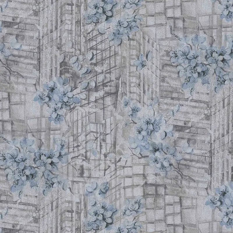 Обои Decori-Decori City 83263 Винил на флизелине (1,06*10,05) Голубой/Серый, Цветы