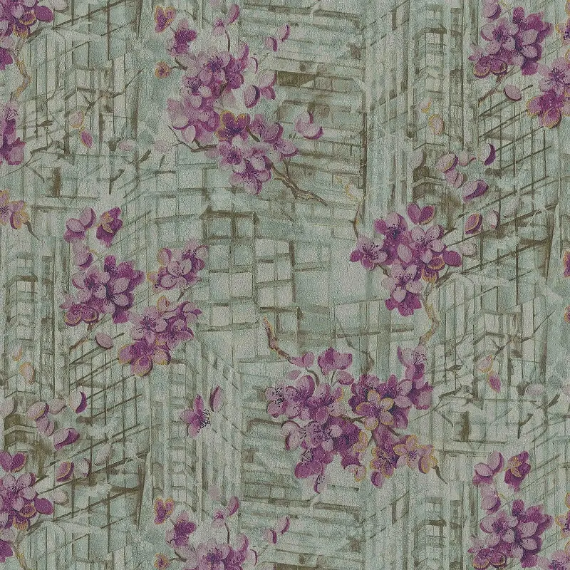 Обои Decori-Decori City 83267 Винил на флизелине (1,06*10,05) Зеленый/Фиолетовый, Цветы