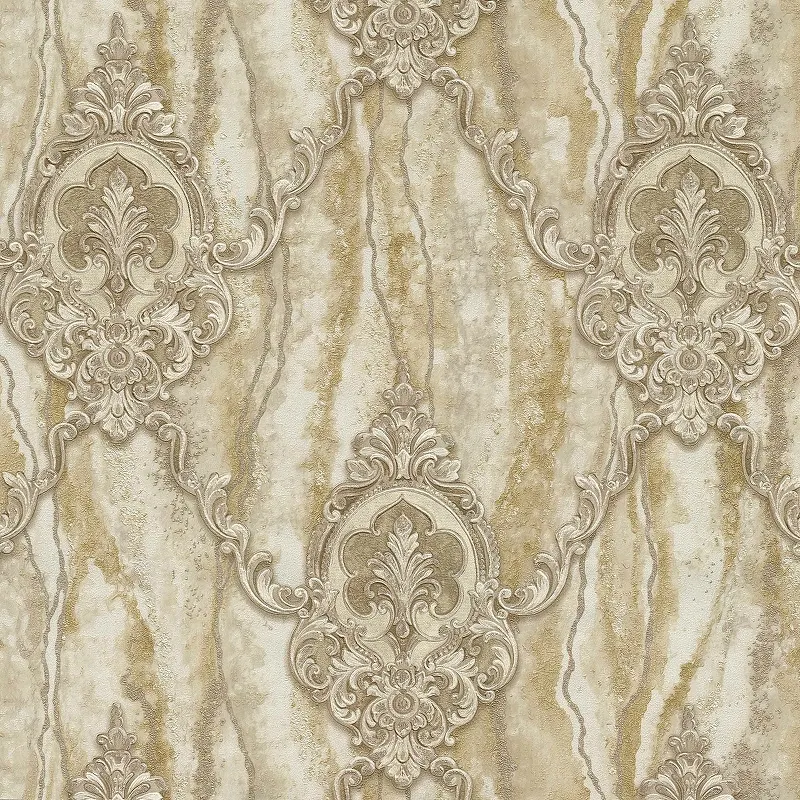 - Винил на флизелине (1,06*10,05) Бежевый, с дамасским и мраморным рисунком для создания стильного интерьера.