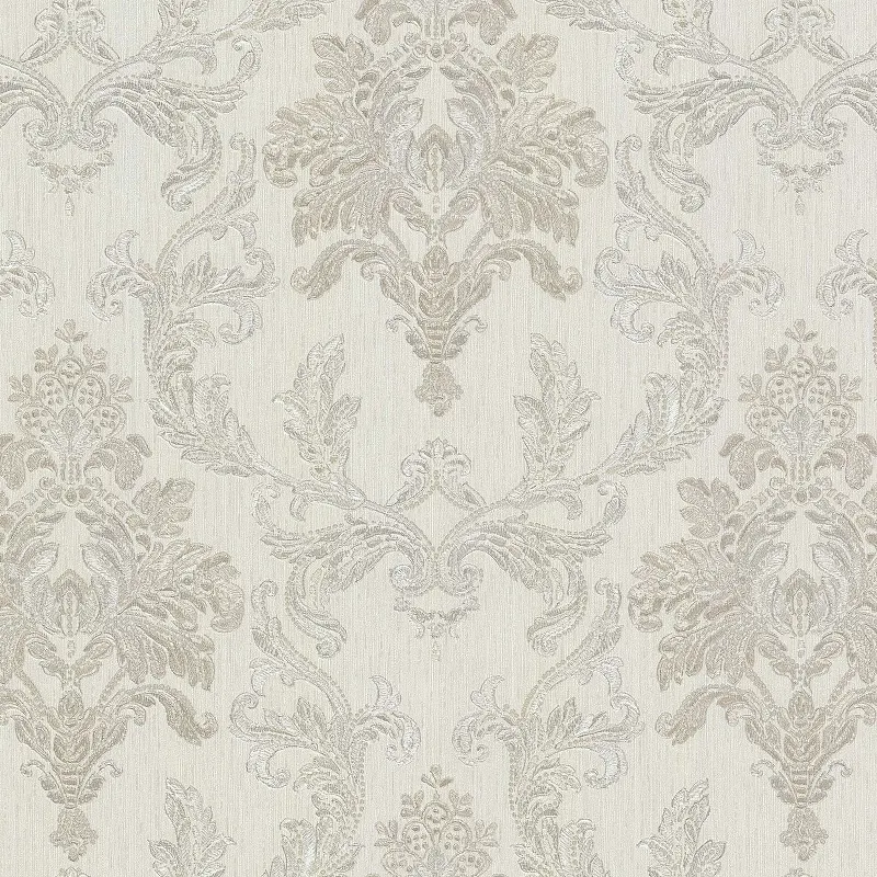 - Бежевые обои с дамасским узором создают атмосферу уюта и элегантности в любом интерьере.