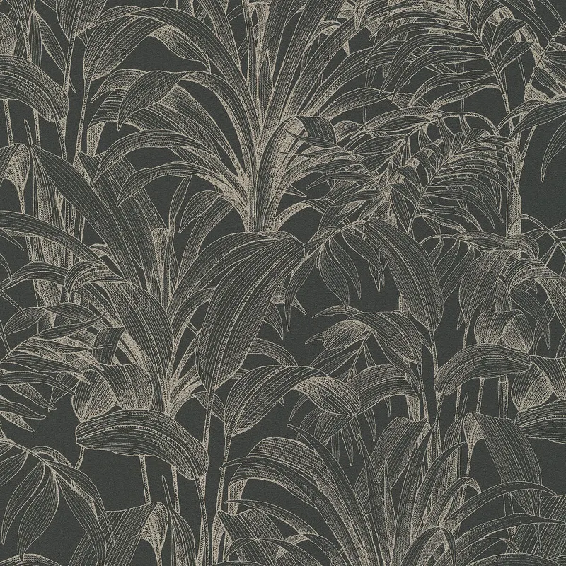 Обои Grandeco Asperia A 51403 Винил на флизелине (0,53*10,05) Черный/Золото, Листья