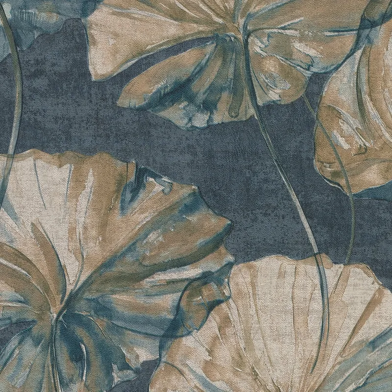 Обои Grandeco Elementum EE 2002 Винил на флизелине (0,53*10,05) Зеленый/Синий/Коричневый, Листья/Цветы