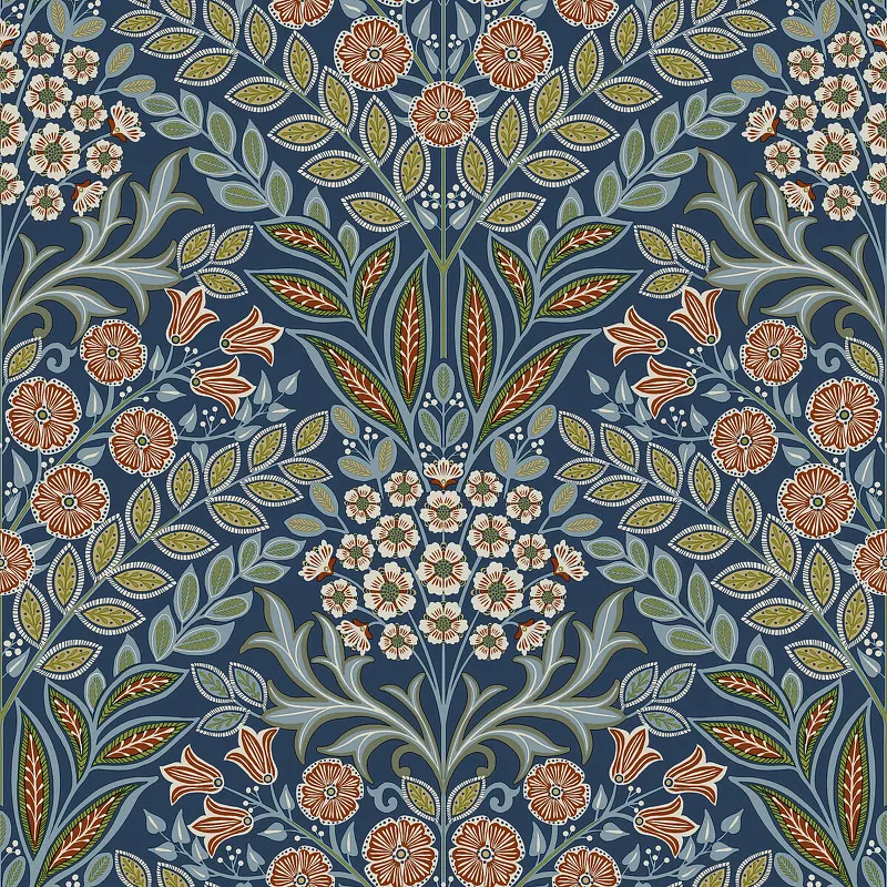 Обои Grandeco Icon IC 2105 Винил на флизелине (0,53*10,05) Синий/Разноцветный, Цветы/Листья