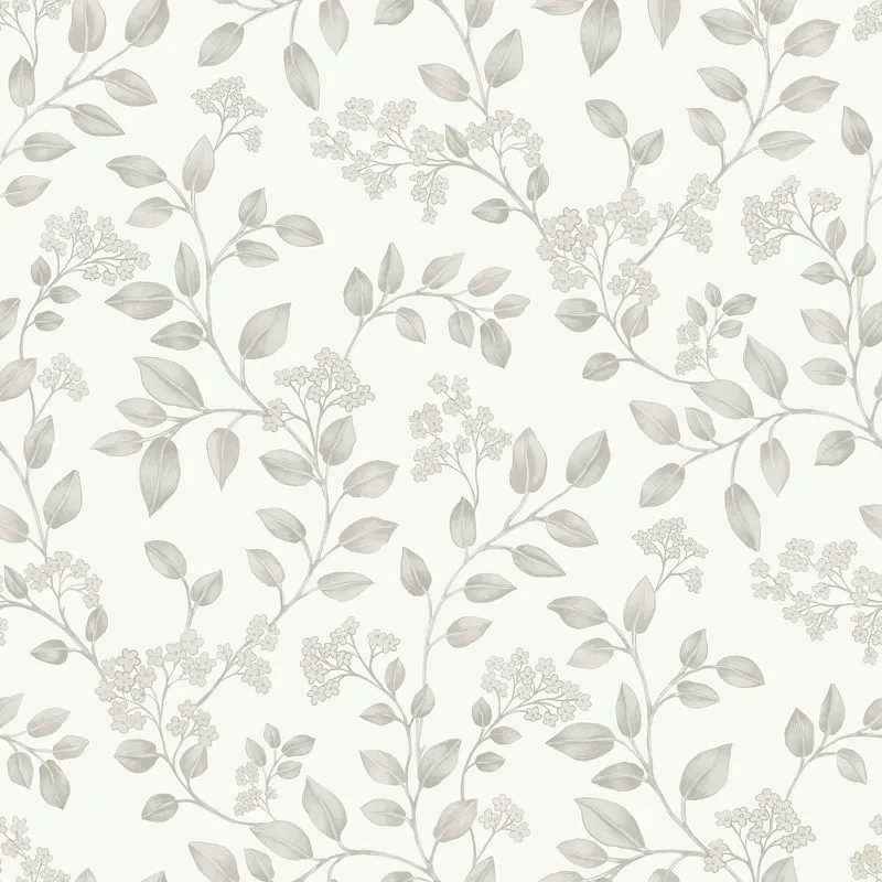 Обои Grandeco Icon IC 3006 Винил на флизелине (0,53*10,05) Белый/Серый, Листья/Цветы