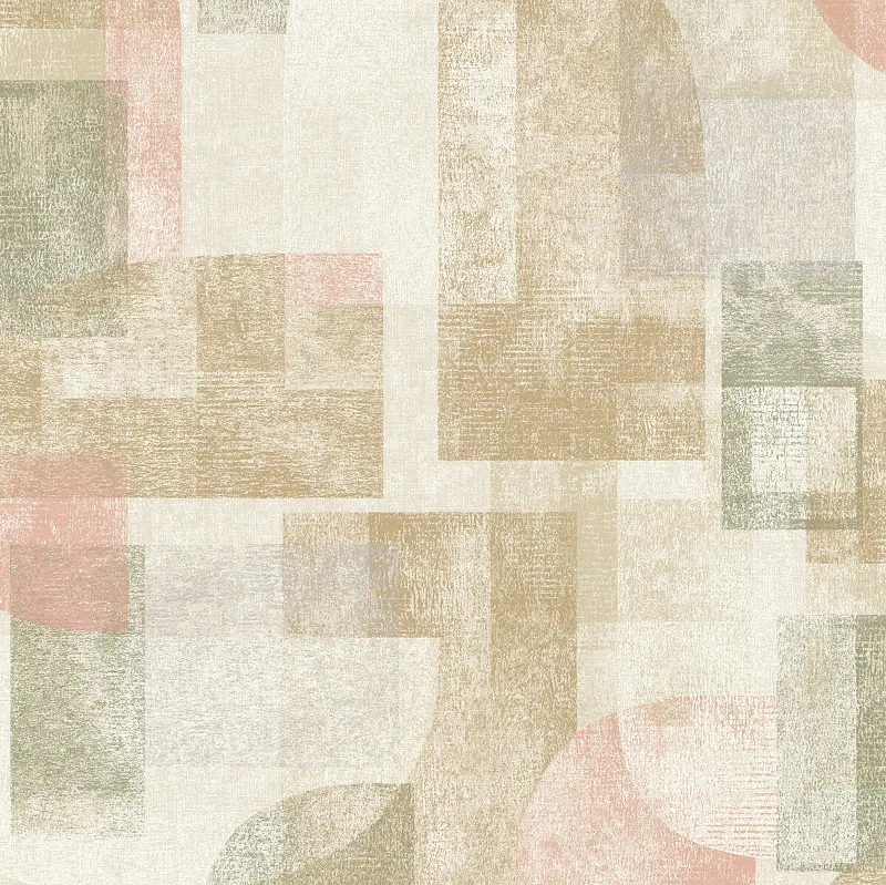 Обои Grandeco Perfect Harmony PH 3507 Винил на флизелине (0,53*10,05) Бежевый/Розовый/Зеленый, Геометрия/Штукатурка
