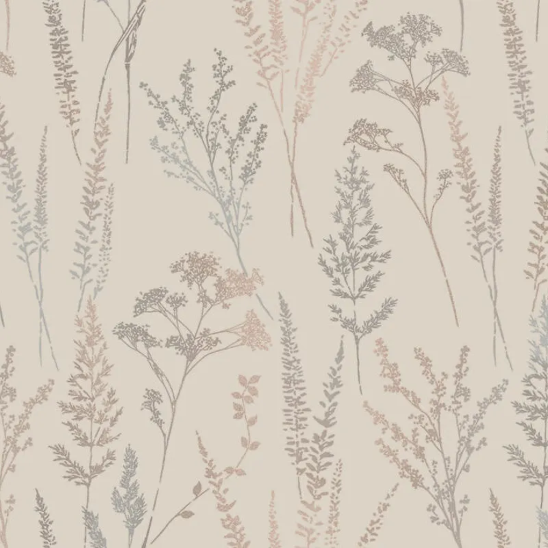 Обои Grandeco Universe 5 UI 3205 Винил на флизелине (1,06*10,05) Бежевый/Коричневый/Сиреневый, Листья/Цветы/Штукатурка