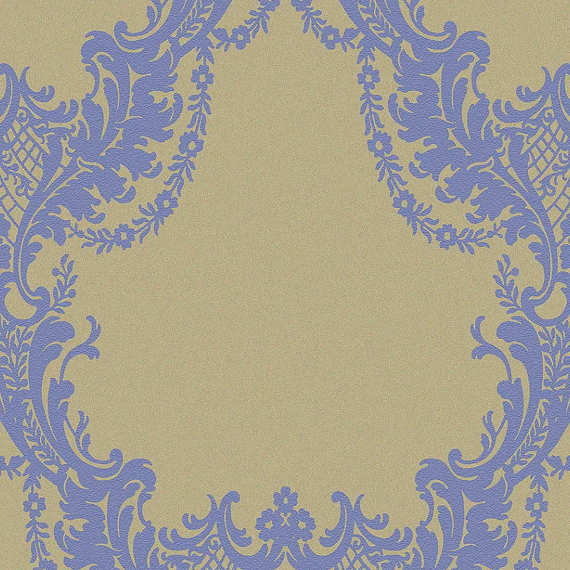• Флизелиновые обои в рулоне размером 1 м на 10,05 м с коричнево-синим вензелевым орнаментом.