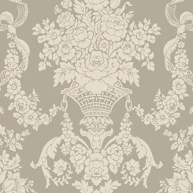 - Коричневый/Бежевый/Серый рисунок дамаск и вензель добавляет интерьеру изысканность и глубину.