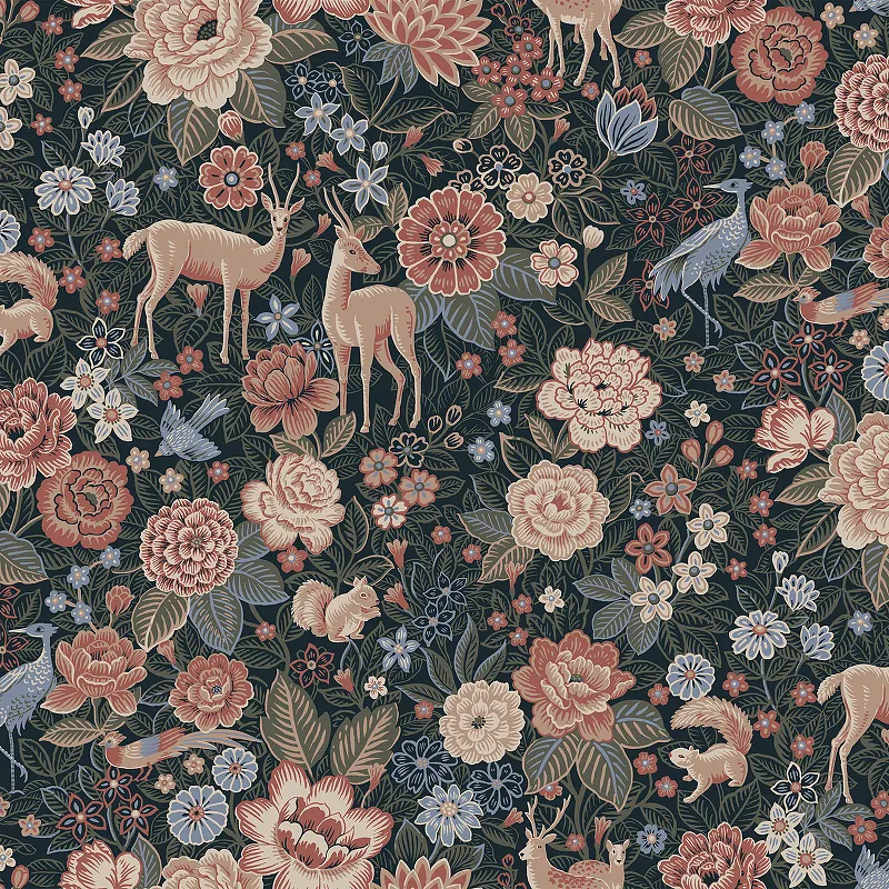 Обои LOYMINA British Style Forest BRIT3 018 Винил на флизелине (1*10,05) Бежевый/Розовый/Синий, Цветы/Животные
