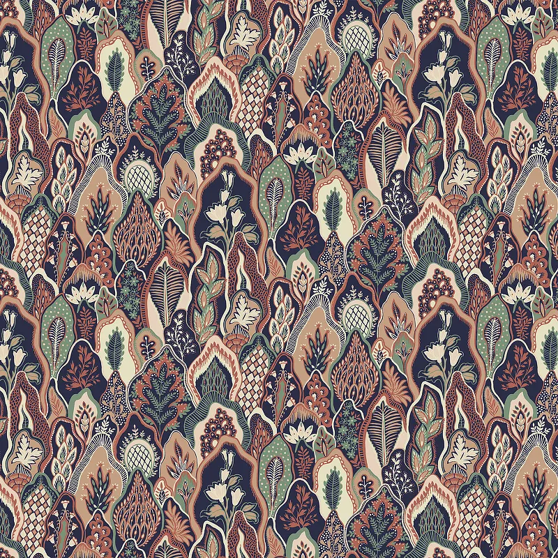 Обои LOYMINA British Style Forest BRIT4 022 Винил на флизелине (1*10,05) Зеленый/Розовый/Коричневый, Листья/Цветы